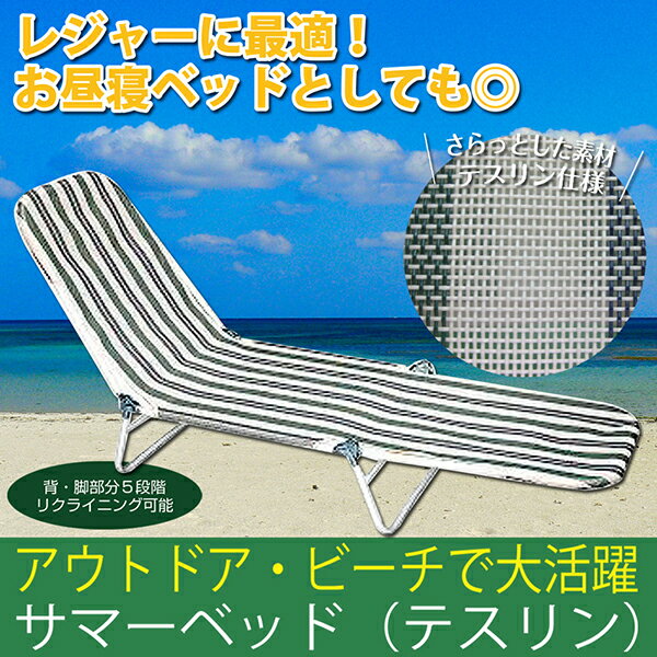 送料無料 海やプールで大活躍 サマーベッド 簡易ベッド テスリン 簡易ベッド 病院 海 プール イス リクライニング ストライプ アウトドアベッド ビーチベッド レジャーベッド