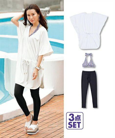 水着 レディース チュニック & レギンス 3点セット スポーツウェア ブラック/ホワイト S/M ニッセン nissen