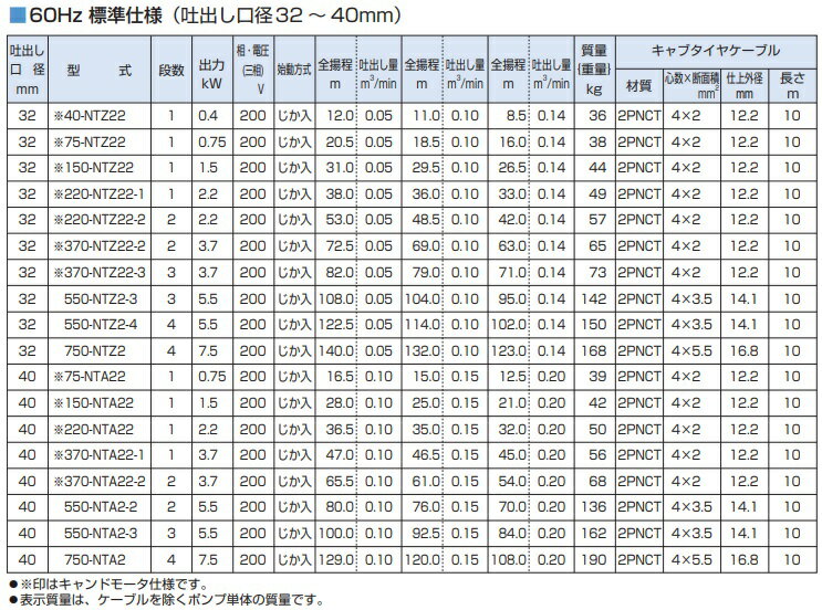 (キャンドモータ仕様) ・NT3型は、特に大水量仕様としています。