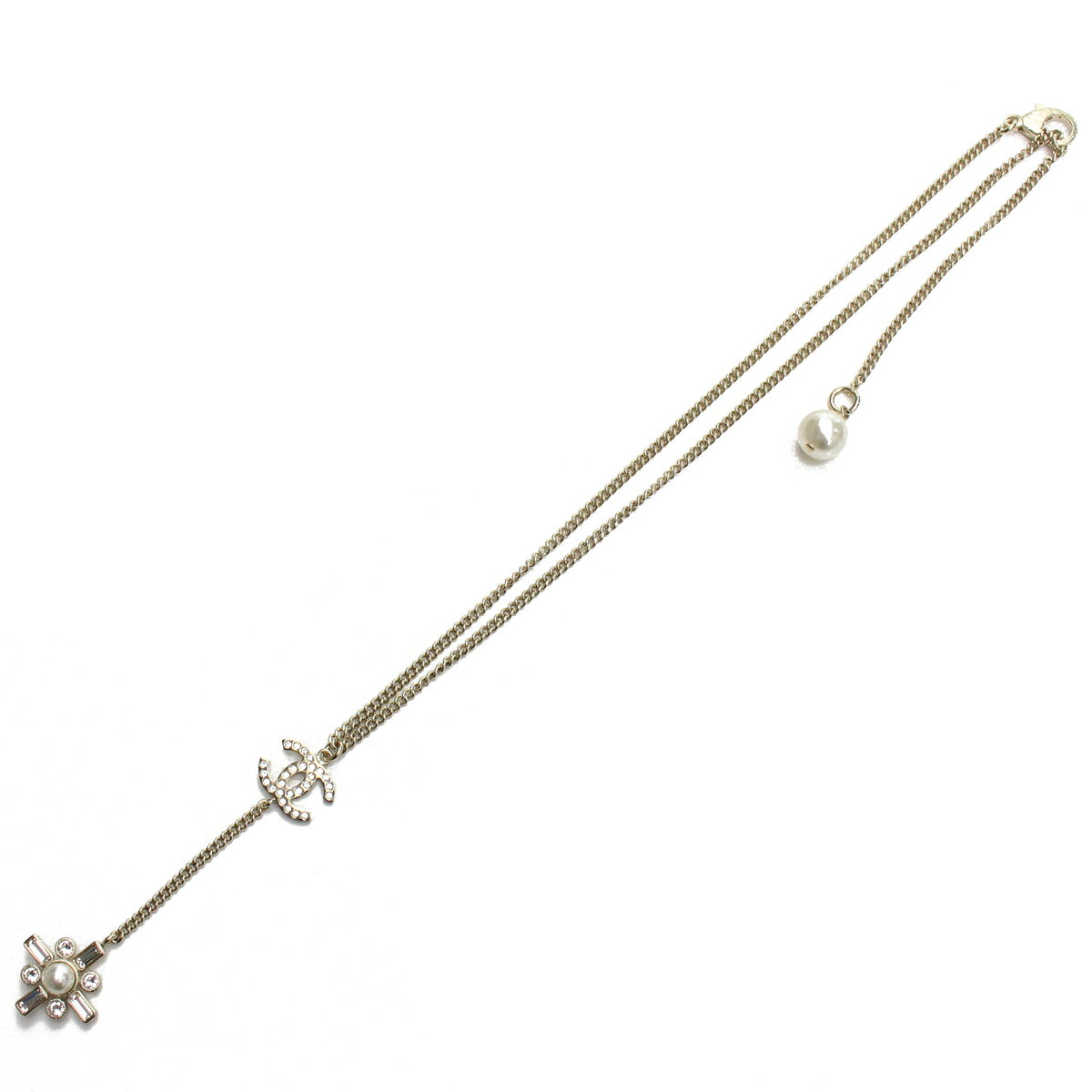 シャネル(CHANEL)ペンダント ■シャネル(CHANEL)商品一覧はこちら■ 商品詳細 品名 シャネル(CHANEL) ペンダント 状態 新品・未使用 品番 AB0635 カラー(カラーNo.) ゴールド/ジルコニア/パール 金具色:ゴールド 素材(素材No.) メタル サイズ(cm) W1.5×H1.2cm全長:約33cmチェーン全長:約40、48cm(2段階調節可能)モチーフ幅(W):約1.5cmモチーフ高さ(H):約1.2cm 仕様 原産国:イタリア※原産国についてはその他諸外国にて生産している場合がございます。