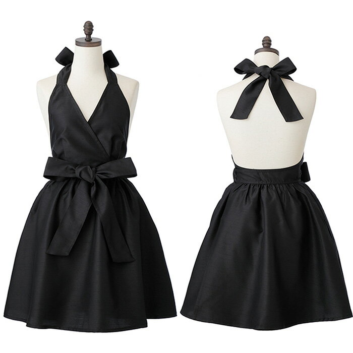 エプロン かわいい ワンピース キッチン 台所 フリル 無地 大きい おしゃれ ANNA Black