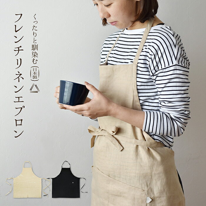 エプロン リネン フレンチリネンエプロン はねるや 送料無料 おしゃれ かわいい 日本製 無地 シンプル 生成 ブラック