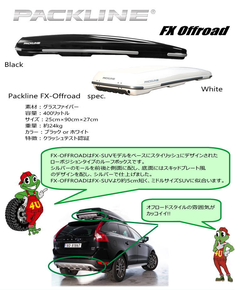 PACKLINE パックライン FX-Offroad ルーフボックス キャリア ノルウェーブランド グロスブラック / グロスホワイト 容量:400L スキー スノーボード フィッシング 用品など収納に アウトドア ジェットバック 収納 正規品 代引き不可 送料無料 10年保証