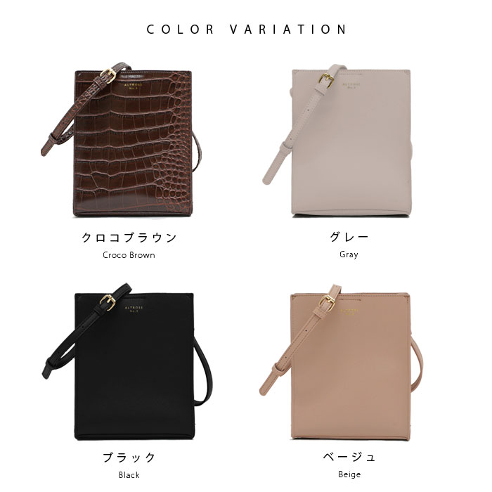 クロコブラウン、グレー、ブラック、ベージュの合わせやすい4色展開。